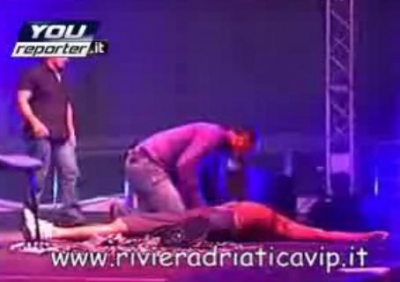 Link do filmu jest tutaj: http://www.youreporter.it/video_Malore_durante_lo_spettacolo_di_Milly_D_Abbraccio_2