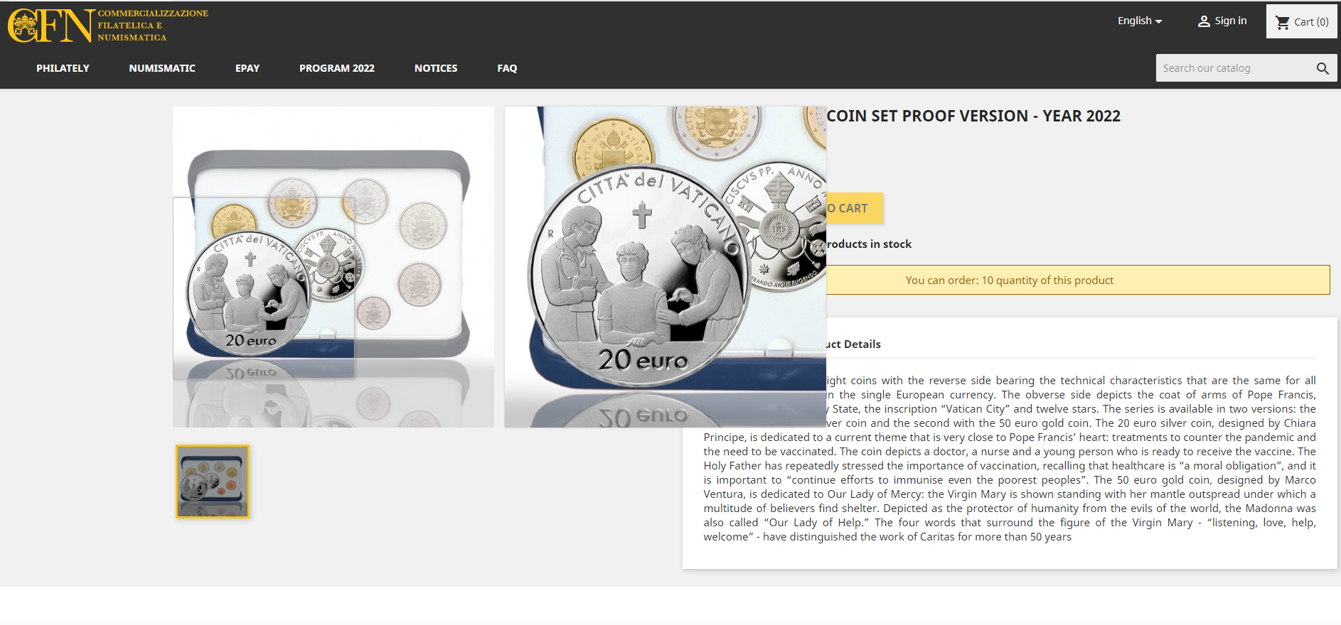 Srebrna moneta, zaprojektowana przez Chiarę Principe, jest „poświęcona aktualnemu zagadnieniu, które jest bardzo bliskie sercu papieża Franciszka”, jak głosiła mennica : „zabiegi w walce z pandemią i koniecznością szczepień”.