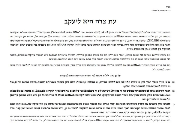 Orzeczenie, zatytułowane Official Translation of the Halachic Delineation, zostało wydane po wysłuchaniu „osiem godzin” obszernych „zeznań ekspertów … w terenie”. Dokument odnosił się również do zeznań „współbraci Żydów, którzy doznali obrażeń, … a także jak ten zastrzyk jest szkodliwy dla prokreacji i płodności”.