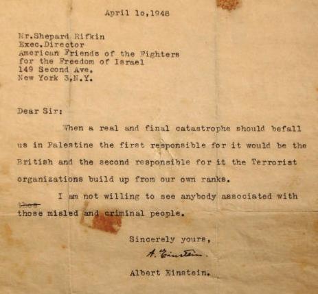 The letter was written to warn the people of the United States to prevent them from supporting a party of terrorists, saying, “the American public must be informed as to the record and objectives of Mr. Begin and his movement….It is in its actions that the terrorist party betrays its real character; from its past actions we can judge what it may be expected to do in the future.”