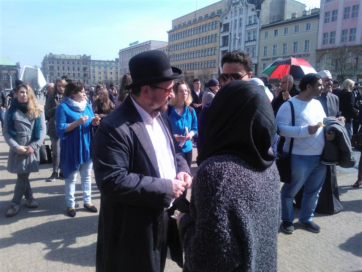 Podczas przemówień uczestników akcji nie mogło zabraknąć odniesień do dzisiejszej rzeczywistości politycznej i mowy nienawiści. Jej efekty najczęściej ponoszą ci, którzy wyglądem, a zwłaszcza religią różnią się od współobywateli. Tymczasem, jak zwrócił uwagę jeden z mówców, profesor Krzysztof Podemski, muzułmanin nie musi być kimś, kto jest uchodźcą i przyjechał do Polski niedawno. Profesor przywitał się z publicznością tradycyjnym arabskim pozdrowieniem “salam alejkum”, chociaż muzułmaninem nie jest.
