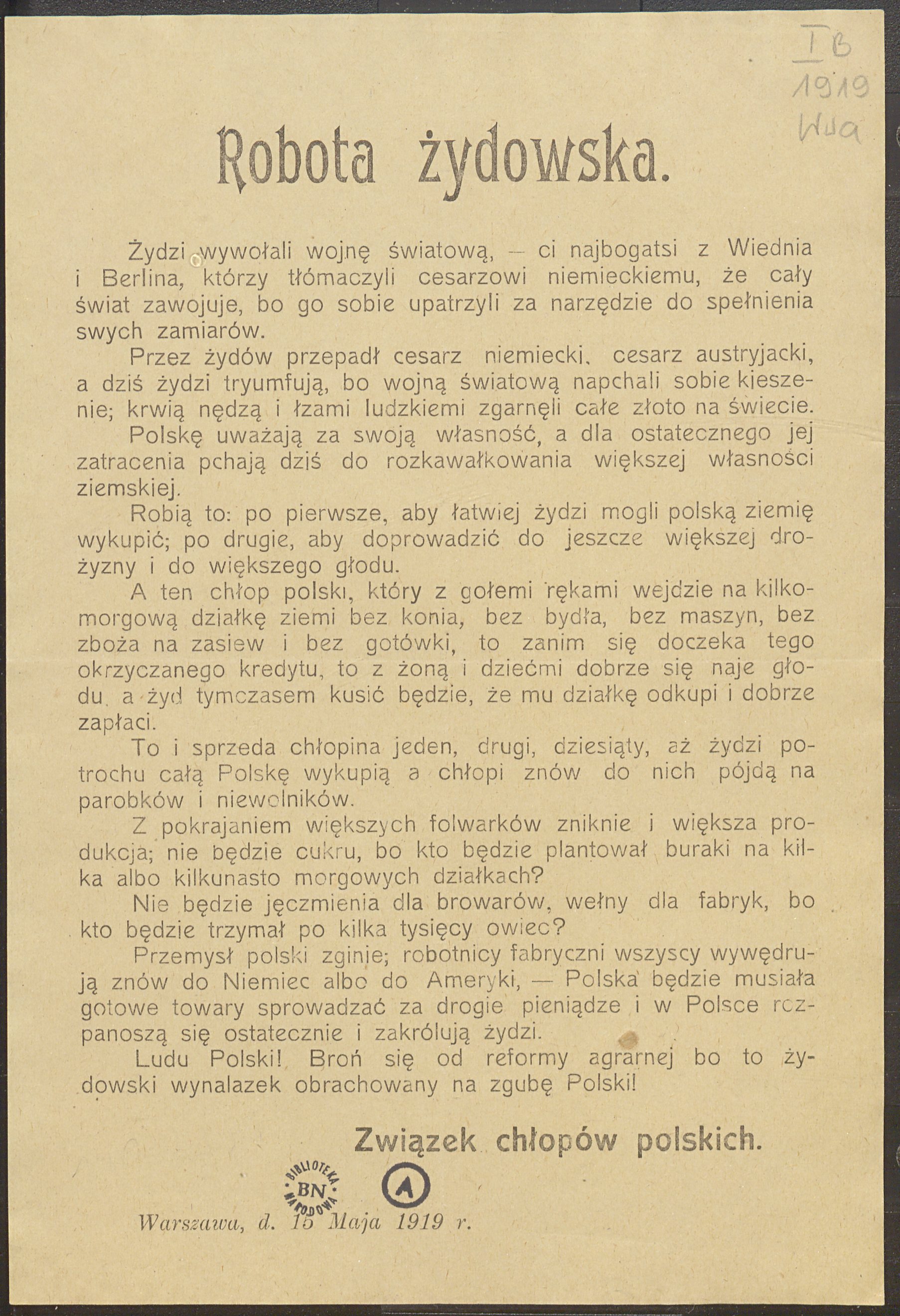 Żydzi wywołali wojnę światową, — ci najbogatsi z Wiednia i Berlina, którzy tłómaczyli cesarzowi niemieckiemu, że cały świat zawojuje, bo go sobie...