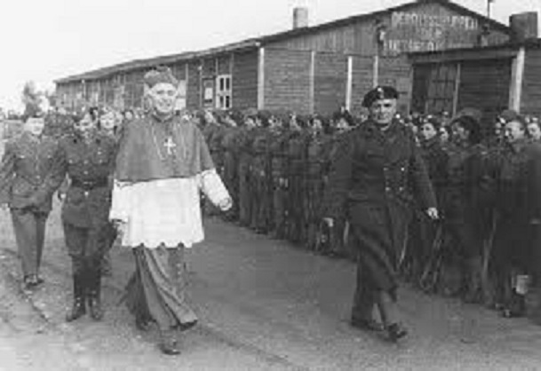 Wizyta bp. Józefa Gawliny 3 maja 1945 na terenie wyzwolonego   obozu w Oberlangen