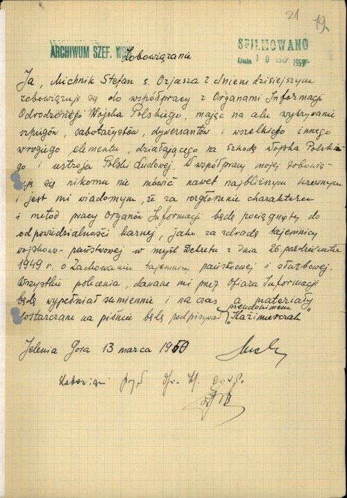 Jednym z sędziów zatrudnionych w służbie terroru był urodzony w 1929 r. w Drohobyczu Stefan Michnik. Wywodził się on z rodziny działaczy komunistycznych, której status określić można jako „inteligencja pracująca”. Od lat młodzieńczych działał aktywnie w organizacjach krzewiących idee wyznawane przez swoich rodziców. W trakcie pobierania nauki w Oficerskiej Szkole Prawniczej został tajnym informatorem (ps. „Kazimierczak”) i szybko awansował w wewnętrznych strukturach organizacji. Niedługo po uzyskaniu dyplomu OSP został zatrudniony jako asesor w Wojskowym Sądzie Rejonowym w Warszawie w stopniu podporucznika. Miał wówczas zaledwie 22 lata.