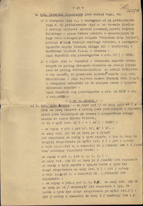 ...i za to skazał... na karę śmierci z utratą praw publicznych i obywatelskich praw honorowych na zawsze i przepadkiem całego mienia na rzecz Skarbu Państwa... (z tego samego wyroku m.in. "sędziego" Stefana Michnika). Z zasobu IPN