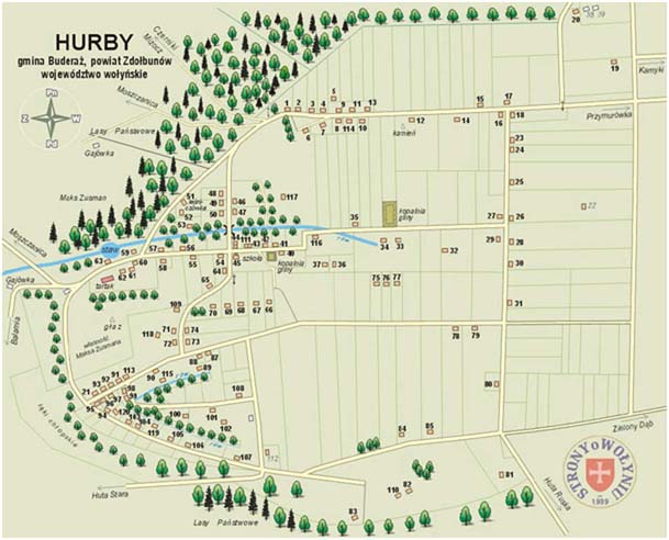 Hurby, to była wielka wieś, a równocześnie jakby oaza ciszy i spokoju. Chodziły od kilku miesięcy słuchy, że ta czy inna polska wieś została napadnięta. Niektórzy mówili, że jest to wynik jakichś porachunków sąsiedzkich. W tych lasach pojawiał się oddział partyzancki Jurgielewiczów z pobliskiej Balarni ( byli tam zbiegli z gett Żydzi i kilku żołnierzy z rozbitych oddziałów wojskowych), który czasami zaopatrywał się we wsi w żywność i zapewniał, iż w rejonie jego działania nic złego nie może się stać mieszkańcom. Jednak od kilku dni krążył po ukraińskich wsiach otaczających Hurby bochenek chleba. Krążył od wsi do wsi, stanowiąc rytualny znak jedności i gotowości. Ten chleb nie bez przyczyny nazywał się chlebem objednania(chlebem zjednoczenia) dla Ukraińców, był symbolem jedności z przywódcami UPA, gotowości do mordowania bezbronnych, nawet dzieci, kobiet i starców. Gotowości do wyrzynania w pień wszystkich mieszkańców będących Lachami, rabowania dobytku ofiar i topienia w ogniu całych wsi. Bochenek chleba w wiklinowym koszyku, owinięty w haftowany w ukraińskie wzory ręcznik, krążył od gminnego Buderaża, poprzez Wielką Moszczanice, Majdan, Budki, Mosty, cerkiew w Stupnie cerkiew we wsi Obchów, cerkiew w Peremorówce, cerkiew w Buszczy, Majdańską Hutę. Wszystkie ukraińskie wsie otaczające Hurby szykowały się do napadu. Po cichu to tu, to tam, padało jak szyfr w języku znanym tylko dla wtajemniczonych, słowo „Hurby”, ale w Hurbach nikt o tym nie wiedział. Mieszkańcy Hurbów nie mieli świadomości, że wokół nich z każdym dniem coraz mocniej zaciska się śmiertelna pętla przygotowywana przez sąsiadów. Noże siekiery, widły, bagnety, poświęcili popi dla świętej sprawy. Od wsi do wsi niosła się wieść: Smert Lacham w Hurbach.