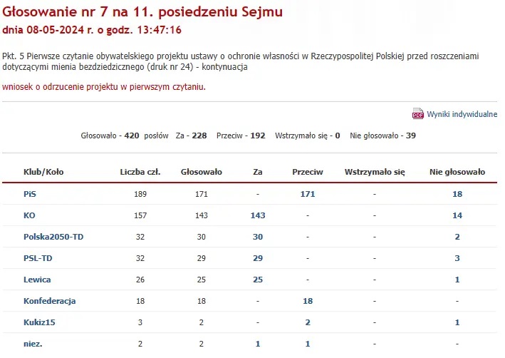 Ustawa anty-447 o roszczeniach dotyczących mienia bezdziedzicznego. Jest decyzja Sejmu