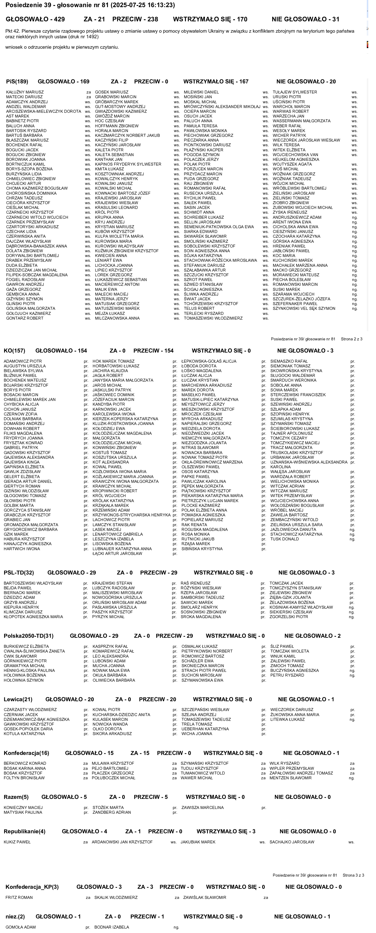 GŁOSOWAŁO - 429 ZA - 21 PRZECIW - 238 WSTRZYMAŁO SIĘ - 170 NIE GŁOSOWAŁO - 31 Pkt 42.