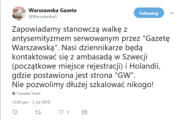 Wszystkim wiadomo, Warszawskagazeta.pl jest bardzo dobrze wszystkim znana z tego, że zwalcza antysemityzm w świecie i w tym celu pisze nawet różne zawiadomienia do władz z donosami o zbrodniach antysemityzmu jak i też dopuszcza się gróźb karalnych pod adresem antysemitów. Tenże Portal Warszawskagazeta.pl – na przeróżne głosy i w różnych miejscach TT, FB – gorliwie odgraża się, że nie spocznie, dopóki antysemickie napaści i poglądy nie zostaną do końca wykorzenione i rzucone w ogień, i portal nie spocznie, i będzie z tym antysemickim plugastwem walczyć nie tylko w Polsce, ale i w całym świecie – aż do skutku.