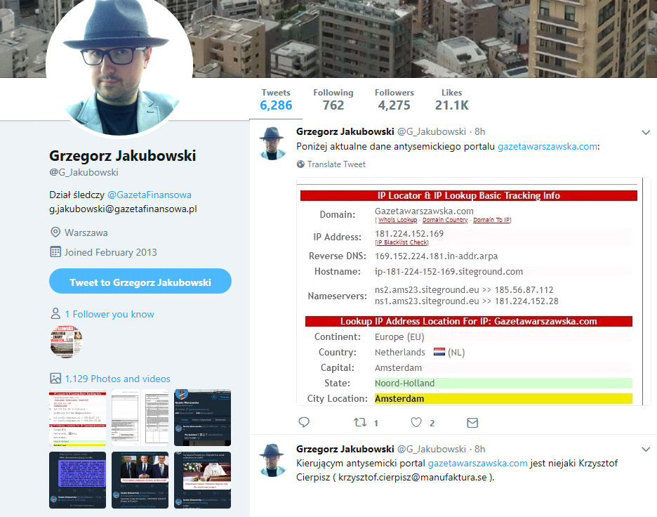 "Tylko w ostatnim czasie były to: Szwecja, Holandia i Kanada. „Firmuje” ów portal bliżej nieznany Krzysztof Cierpisz, rzekomo zamieszkujący Szwecję."