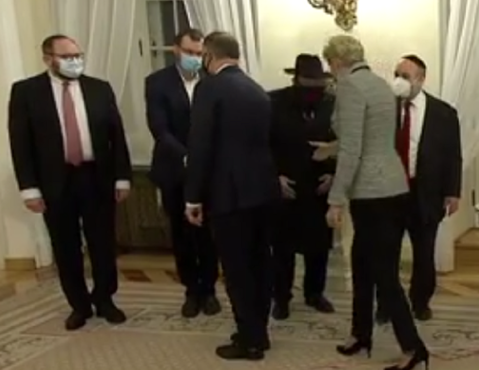 W Pałacu Prezydenckim, na oficjalnym transmitowanym spotkaniu, rabin poniża żonę Prezydenta, podczas wypełniania przez nią jej obowiązków jako Pierwszej Damy. Rabin Szalom Ber Stambler ostentacyjne odmawia podania ręki powitania Pierwszej Damie, a to w najbliżej obecności jej męża tzn. „Prezydenta”. To wyraźnie widać na filmie.