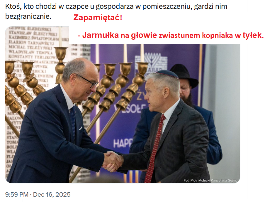 Nie żałujemy Czarzastego — przeciwnie, to straszny, bezcelny szkodnik — ale Rose jest potępiony, przekroczył wszelkie normy. Ten żydowski ambasador poniżył Polskę!