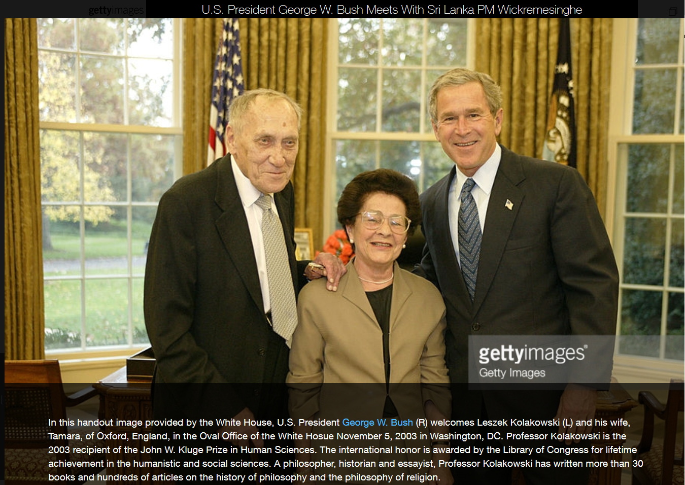 Leszek Kołakowski u prez. USA Bush`a, w środku żona - żydówka Tamara (z domu Dynenson).