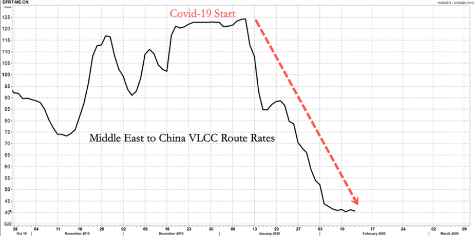 W dużym stopniu spadek zapotrzebowania na ropę wynika z tego, że, o czym informowaliśmy w piątek, chińska gospodarka się chwieje lub ośrodki przemysłowe kraju pozostają zamknięte.