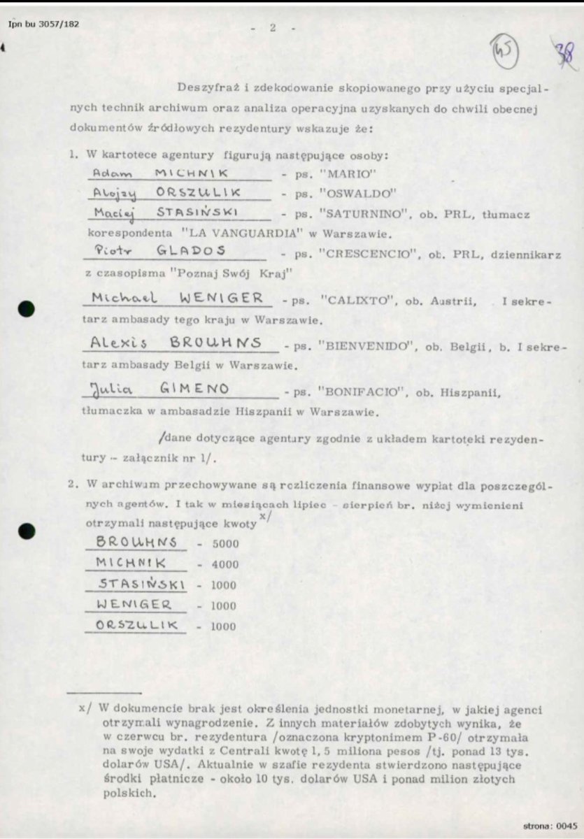 - Pod koniec lat 80. hiszpański wywiad zarejestrował jako swych informatorów kilka znanych dziś osób. Byli wśród nich Jacek Czaputowicz, Adam Michnik, bp Alojzy Orszulik