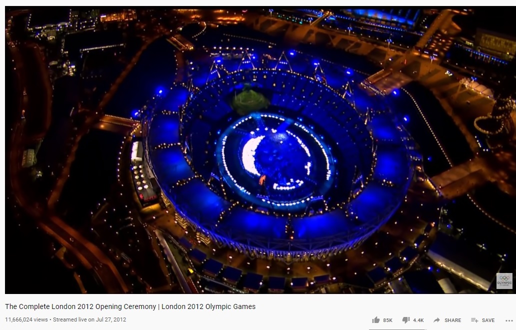 BBC opublikowało nagranie z całej ceremonii otwarcia w dniu 29 października 2012 r. Pod redakcją Danny'ego Boyle'a z dodatkami do tła. Ale najciekawsze jest to, że dzieje się programowanie predykcyjne; spójrz na niektóre z tych zdjęć. Wygląda podobnie? Uwaga: siedzenia wyglądają puste na stadionie tuż za rytuałem.
