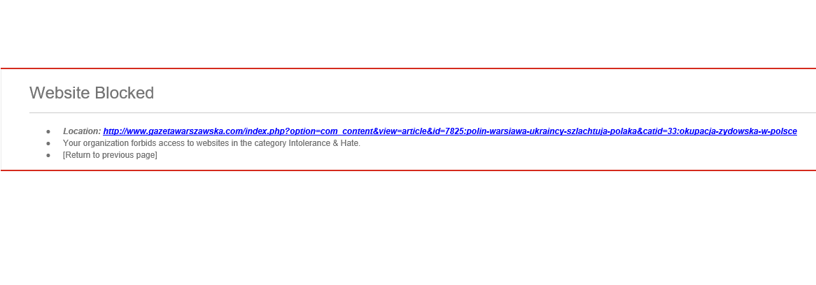 - Your organization forbids access to websites in the category Intolerance & Hate.