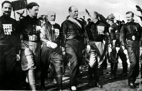 „Duce“, oraz (od lewej ku prawej) Itelo Balbo, Gen. Emilio De Bono, Cesare De Vecchi i Michele Bianchi, Kwadrumwirowie Marszu na Rzym (28 paźdź. 1922).