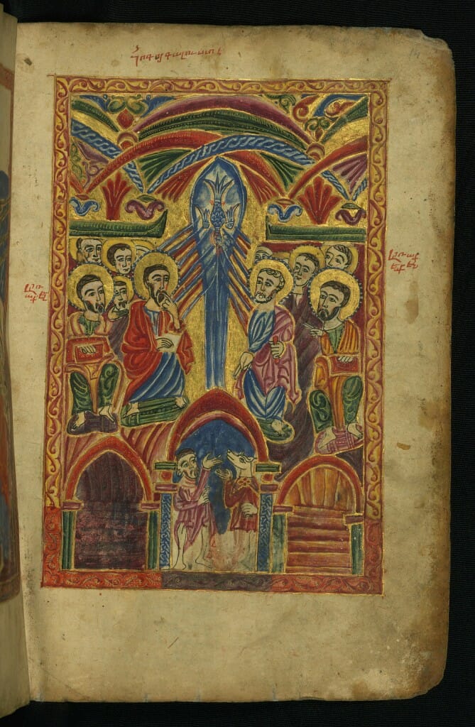 The Dog-headed men are seen as the farthest race present at Pentecost. Because they are the farthest, in some Armenian images they appear in the center of the door or else they appear alone, representing a distilled image of the ultimate foreigner. There are some other images, for example a well-known image where dog-headed men are represented as the Barbarian enemies who threaten Christ. Sometimes they are seen as one of the races encountered in the mission of the Apostles.