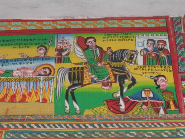 Western images of St-Christopher present him as a giant Canaanite who’s main story has him helping people cross a river by carrying them on his back. One day he crosses a young child who becomes heavier and heavier as Christopher advances in the water, so much that he is afraid he will drown. Upon asking the child why this is so, Christopher discovers the child to be Christ, hence his name: Christopher, the “Christ-carrier”[1].