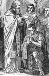 His long pontificate of twenty-one years, famous for several reasons, is remembered in particular for the Council of Nicea, the Baptism of Constantine, and the triumph of the Church. Some authors would place Constantine's Baptism later, but there are numerous and serious testimonies which fix the emperor's reception into the Church under the reign of Saint Sylvester, and the Roman Breviary confirms that opinion. Constantine, while still pagan and little concerned for the Christians, whose doctrine was entirely unknown to him, was attacked by a kind of leprosy which soon covered his entire body. One night Saint Peter and Saint Paul, shining with light, appeared to him and commanded him to call for Pope Sylvester, who would cure him by giving him Baptism. In effect, the Pope instructed the royal neophyte and baptized him. Thus began the social reign of Jesus Christ: Constantine's conversion, culminating in the Edict of Milan in 313, had as its happy consequence that of the known world.