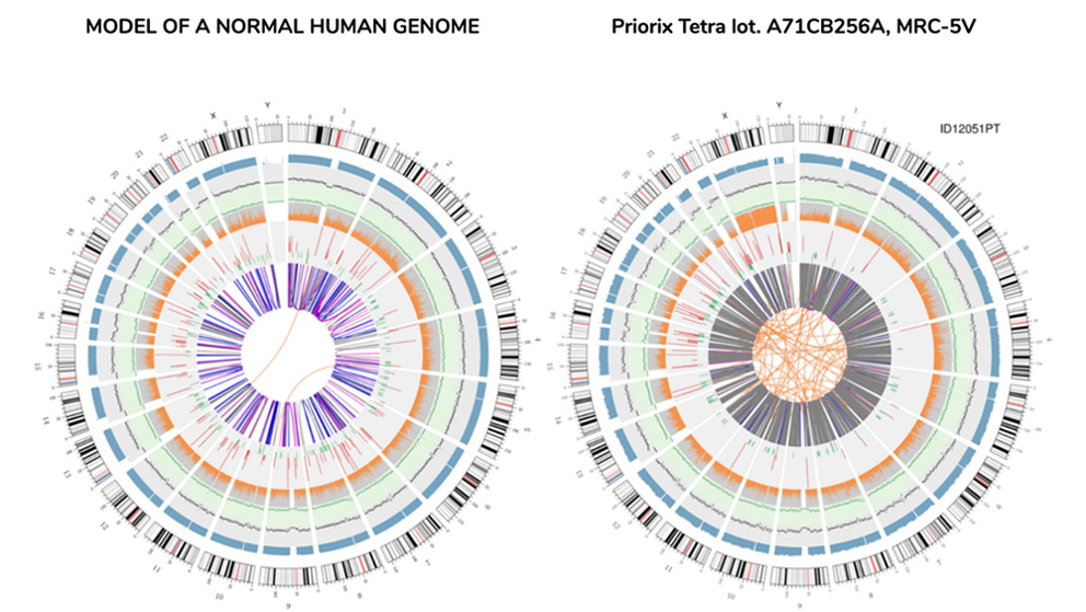 Włoscy naukowcy z Corvelva odkryli w szczepionce Priorix Tetra (odra-świnka-różyczka-ospa wietrzna, w skrócie MMRV) pełny genom ludzki ze wszystkimi chromosomami osobnika męskiego. Oznacza to w rzeczywistości, że MRC-5 pochodzi od poronionego męskiego płodu.