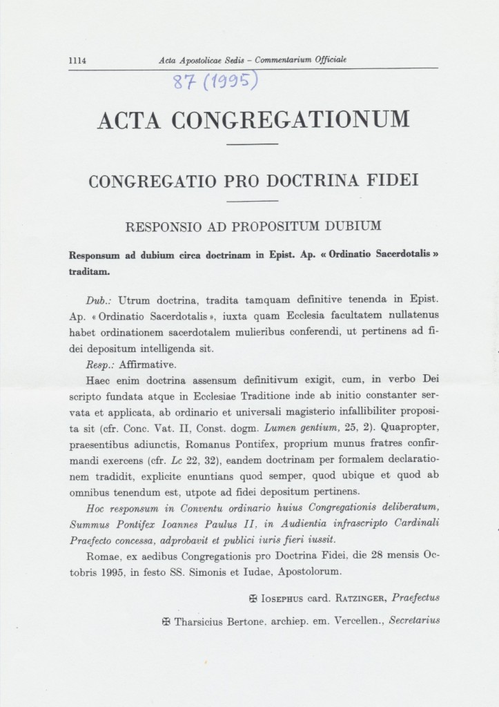 Bo mówi o tym, że dziewczyny mogą być dopuszczone do posługi, a zaraz potem wyjaśnia to, że celem tej posługi jest właściwe wdrożenie posługujących do ich przyszłego stanu kapłańskiego. Dodatkowo, można by zrozumieć, że sam papież miałyby podważać tym dokumentem swoje własne nauki, gdzie bezapelacyjnie negował prawo kobiet do kapłaństwa.