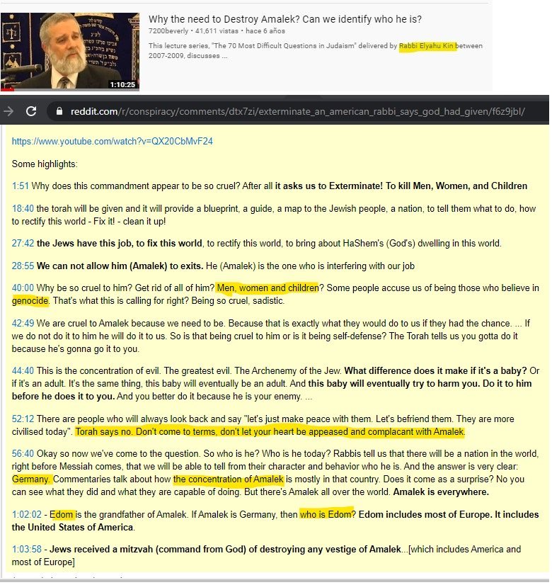 mówi o tym, dlaczego jesteśmy tacy okrutni musimy być okrutni dla amalika, bo dokładnie to by nam zrobili, gdyby mieli szansę, gdyby mieli szansę, gdybym miał szansę, on zniszczy naród żydowski, Shalom, jeśli nie wierzysz, spójrz na tę historię Hamana to jest dokładnie to, co próbował zrobić, nie tylko mężczyźni, mężczyźni, kobiety i dzieci, i w całej historii istniały programy, próby i spiski, aby dokładnie to zrobić, przez tych, którzy pochodzą z Amalik, a ostatnio co z samym Hitlerem czy on nie próbował tego zrobić?