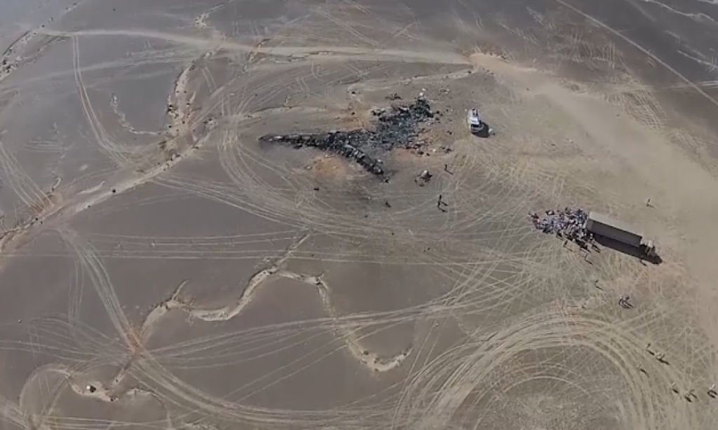 bo wygląda tak, jakby spadł w sposób kontrolowany, ruchem płaskim - w rzeczywistości zaś powinien wykonywać ruch obrotowy wokół osi podłużnej kadłuba – której był częścią - w trakcie spadania i w trakcie takiego ruchu obrotowego powinien w kontakcie z ziemią doznać typowych dla tego ruchu uszkodzeń, czego nie widać.