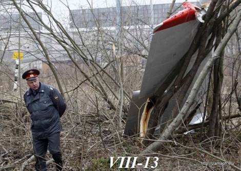 Położenie skrzydła lewego (LOW) –VIII-13/12 jest nieprawdziwe, bo element taki nie może przelecieć tak daleko, jak to wynika z raportu MAK.