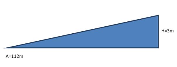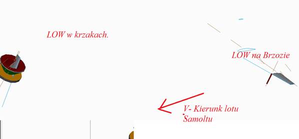 LOW przeleciało po przekątnej, A= = 112m ( na szkicu A113 i H ok 2,5m)