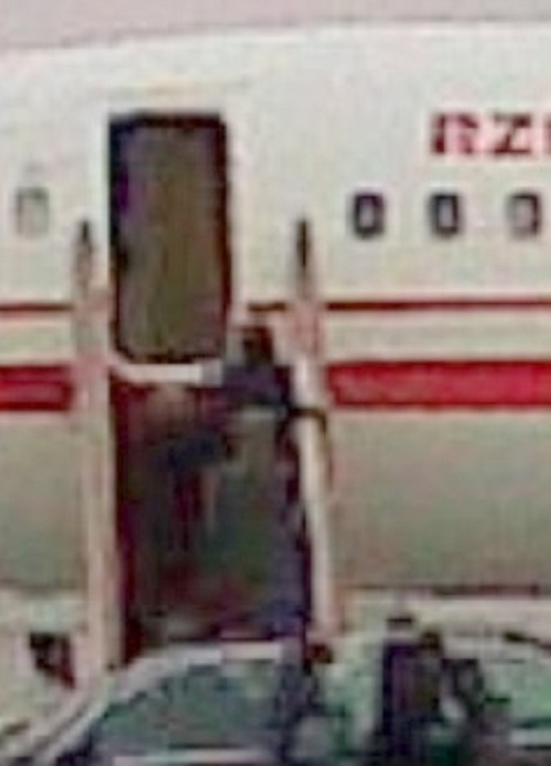 Widać wyraźnie, że w drzwiach, gdzie zawsze stoi personel pokładowy witający wchodzących na pokład samolotu - tu nie ma nikogo. Zamiast tego widzimy jedynie wyraźnie bezczelny retusz, najwyraźniej mający coś ukryć.